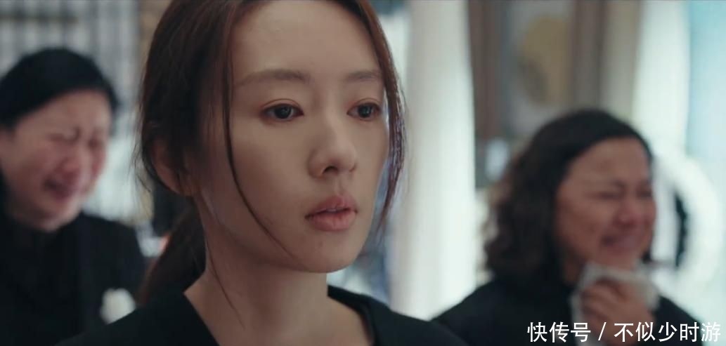 剧中她的神情总是呆滞,目光涣散,即便周围人哭成一片,她仍像被抽离现场般静止不动。